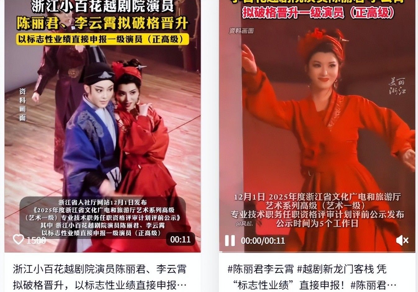 但偏偏有两位越剧新星,短短两年间从默默无闻跃升至行业巅峰——拟直接评定为一级演员,这可是正高级职称,相当于艺术领域的“教授”级别,含金量极高。